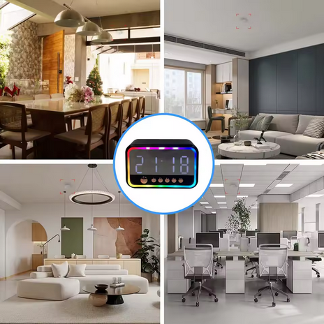 4K alarm clock + Bluetooth speaker + hidden camera, Wi-Fi connection, with night vision, supports mobile APP